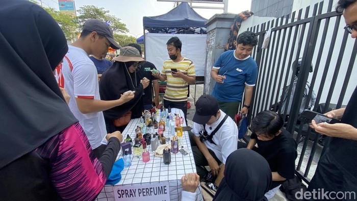 “Kalau CFD ramai banget, bisa ratusan orang beli semprotan. Ini usaha kecil-kecilan, tapi hasilnya lumayan,” kata Rani, salah satu pedagang parfum.