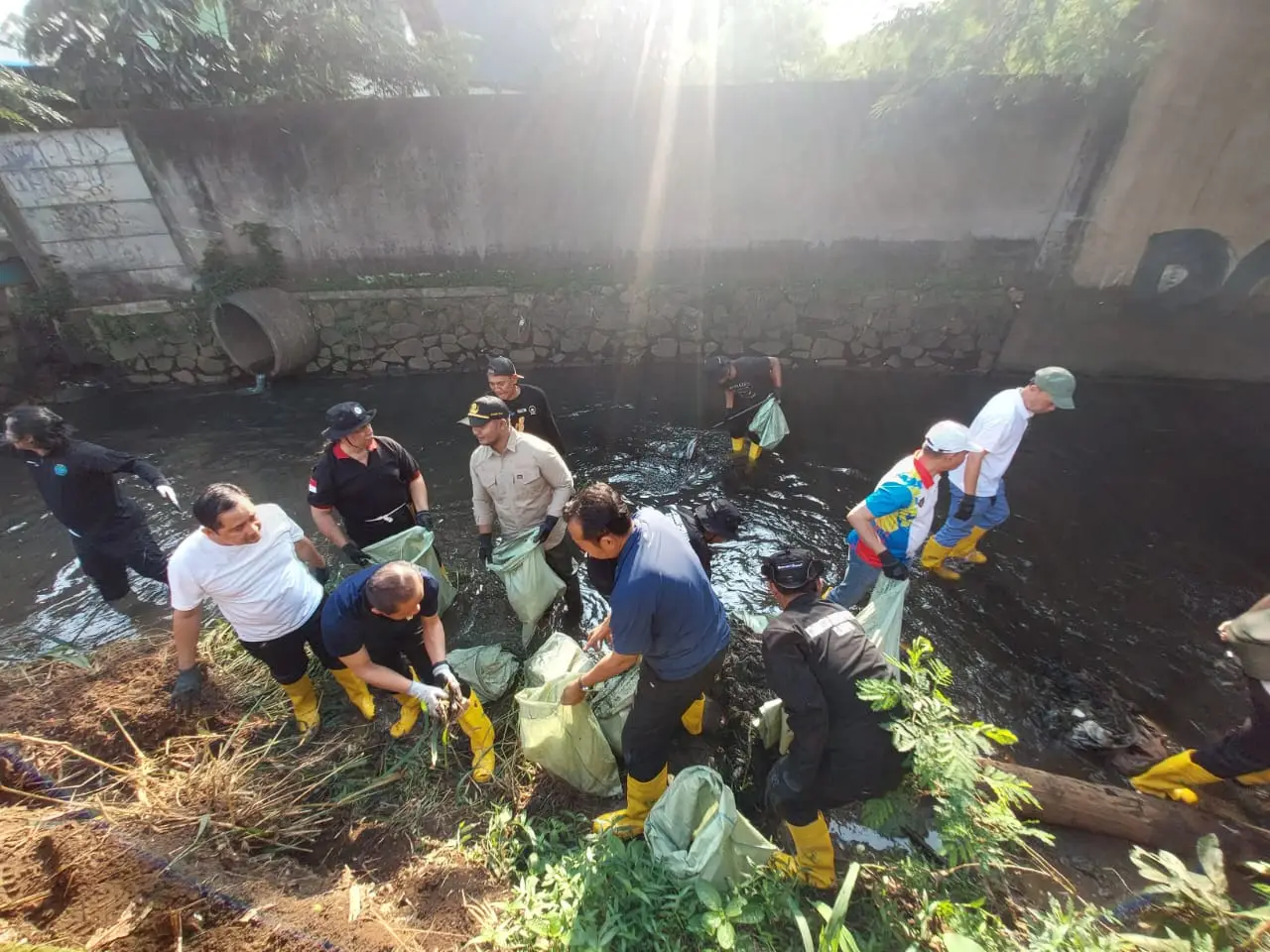 Aksi pembersihan kali ini melibatkan Satgas Kebersihan Kota Depok, komunitas pecinta lingkungan, pelajar, serta warga sekitar. Di antara mereka tampak sejumlah relawan dari komunitas “Cinta Sungai Cipinang” yang membawa jaring, kantong plastik besar, dan alat pengangkut untuk mengumpulkan sampah domestik yang mengendap di dasar sungai.